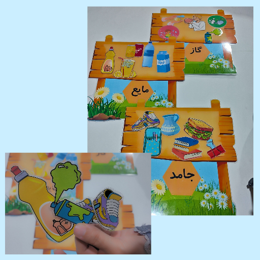 تابلوی آموزشی علوم ، دوم ، حالتهای ماده ، جامد مایع گاز ، لمینتی ، مگنتدار ، سایز a3