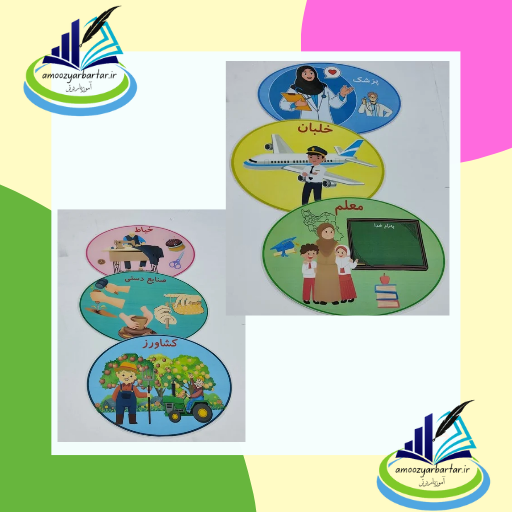 بُرد آموزشی ، شغلهای تولیدی و خدماتی ، سایز a4 ، لمینت شده ، پایهی سوم تعداد ۶ تا