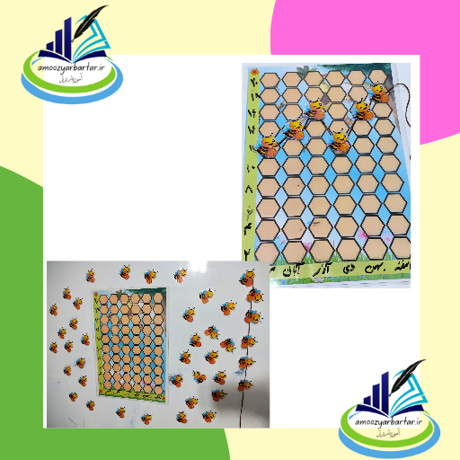 جدول نمودار سایز a3 ، با بیست زنبور با قطر ۳ سانت ، آموزش نمودار خطی و ستونی ، لمینت شده و مگنت.دار