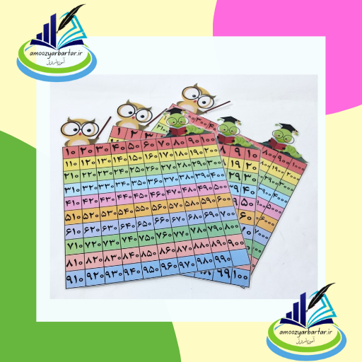سه بنر اعداد ، هر کدام سایز a3 ، جدول یکی یکی ، ده تا ده تا و صد تا صد تا ، لمینتی و مگنتدار